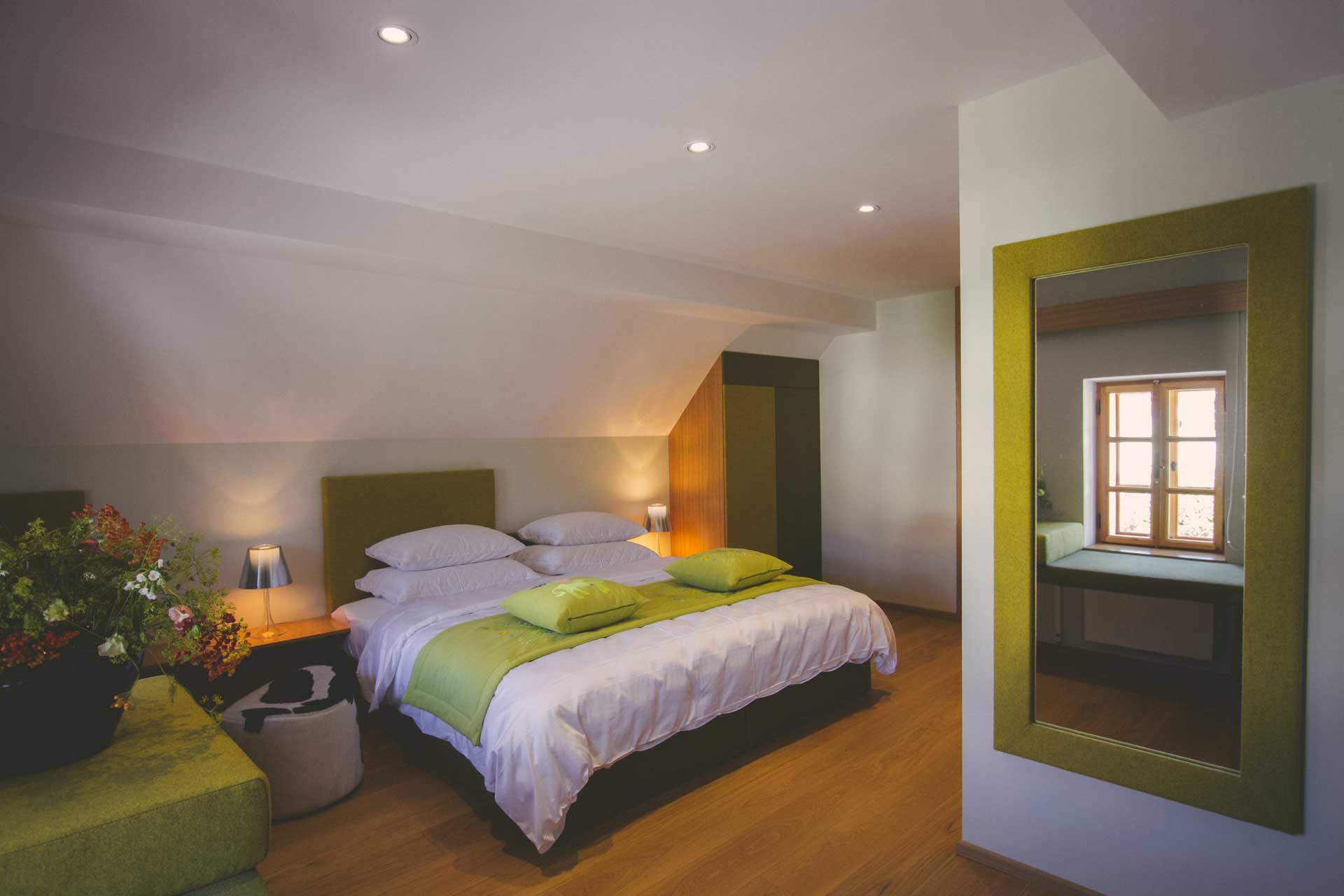 Tradicionalna ribniška hiša je prenovljena v mikro hotel s štirimi tematskimi sobami. Medtem, ko je zunanjost stavbe ostala bolj ali manj nespremenjena, je v notranjosti tradicija spremenjena v prostor za sodobno bivanje. V zasnovi oblikovanja interierja so interpretirane tipične lokalne pokrajine: travnik, pašnik, gozd in senik. Stilizirani so v abstraktnih, arhitekturnih postavitvah, ki ustvarjajo posebno ambientalno izkušnjo za gosta hotela. Posamezni elementi iz pokrajine so izpostavljeni, postanejo osnovni gradniki prostorske postavitve posameznih sob. Skupna zajtrkovalnica s kuhinjo je sodobno oblikovana, posebej poudarek pa ji daje “drevo”, ki kot na središču vasi, bdi nad druženjem gostov. Notranjost Boštjanove hiše se navezuje na zunanjo ureditev in združuje značilnosti tradicionalne vaške kmetije z zahtevami sodobnega načina življenja.